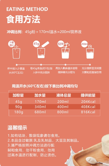 适用于10岁以上需对营养素进行全面补充且对特定营养没有特别要求的人群的营养补充或饮食替代。