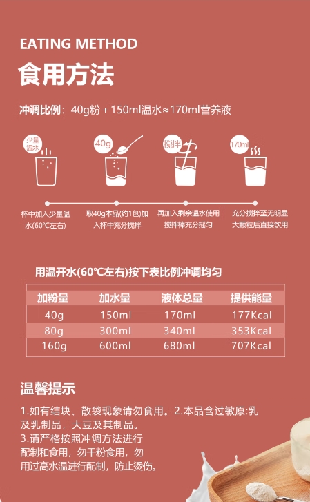 适用于10岁以上需对营养素进行全面补充且对特定营养没有特别要求的人群的营养补充或饮食替代。胃肠道功能较好的患者日常营养补充或饮食替代。