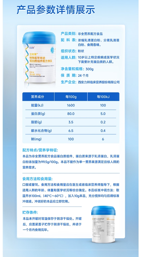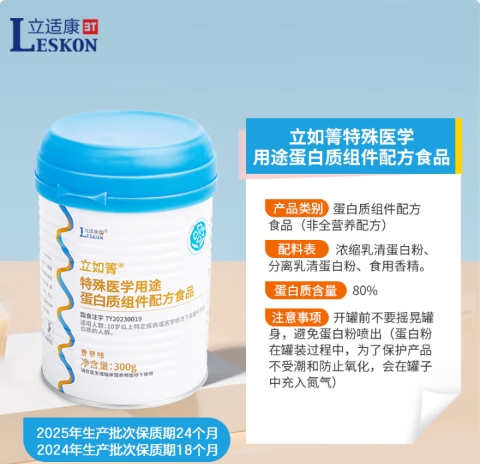 立适康立如箐特医非全营养配方粉 乳清蛋白粉营养补充300g香草味